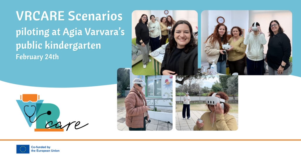 The VRCARE project will bring meaningful innovation to the world of early childhood education. Recently, we piloted our childcare scenarios using VR sets at the Agia Varvara Public Kindergarten in Cyprus. This visit allowed us to test immersive training in a real-life environment.
